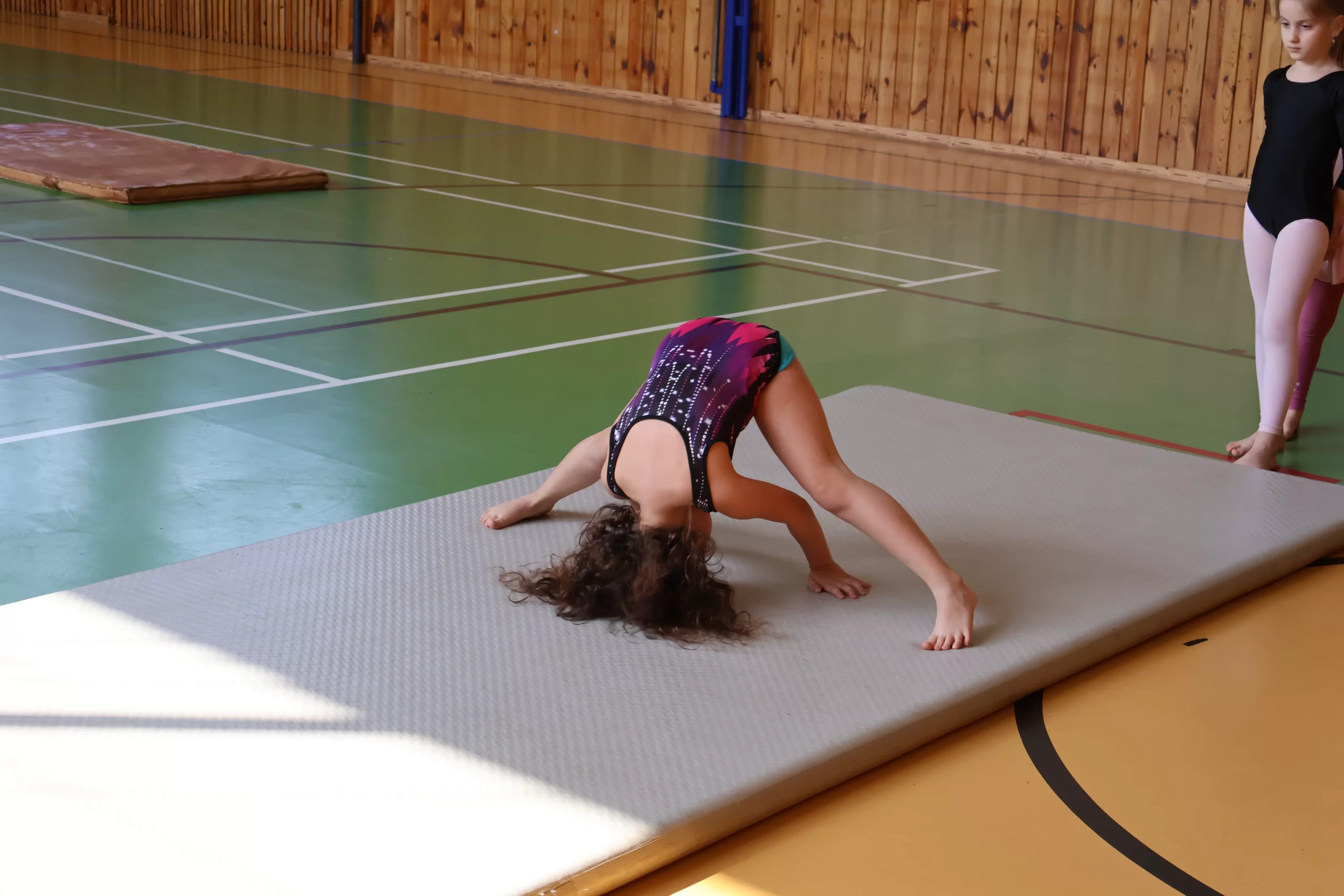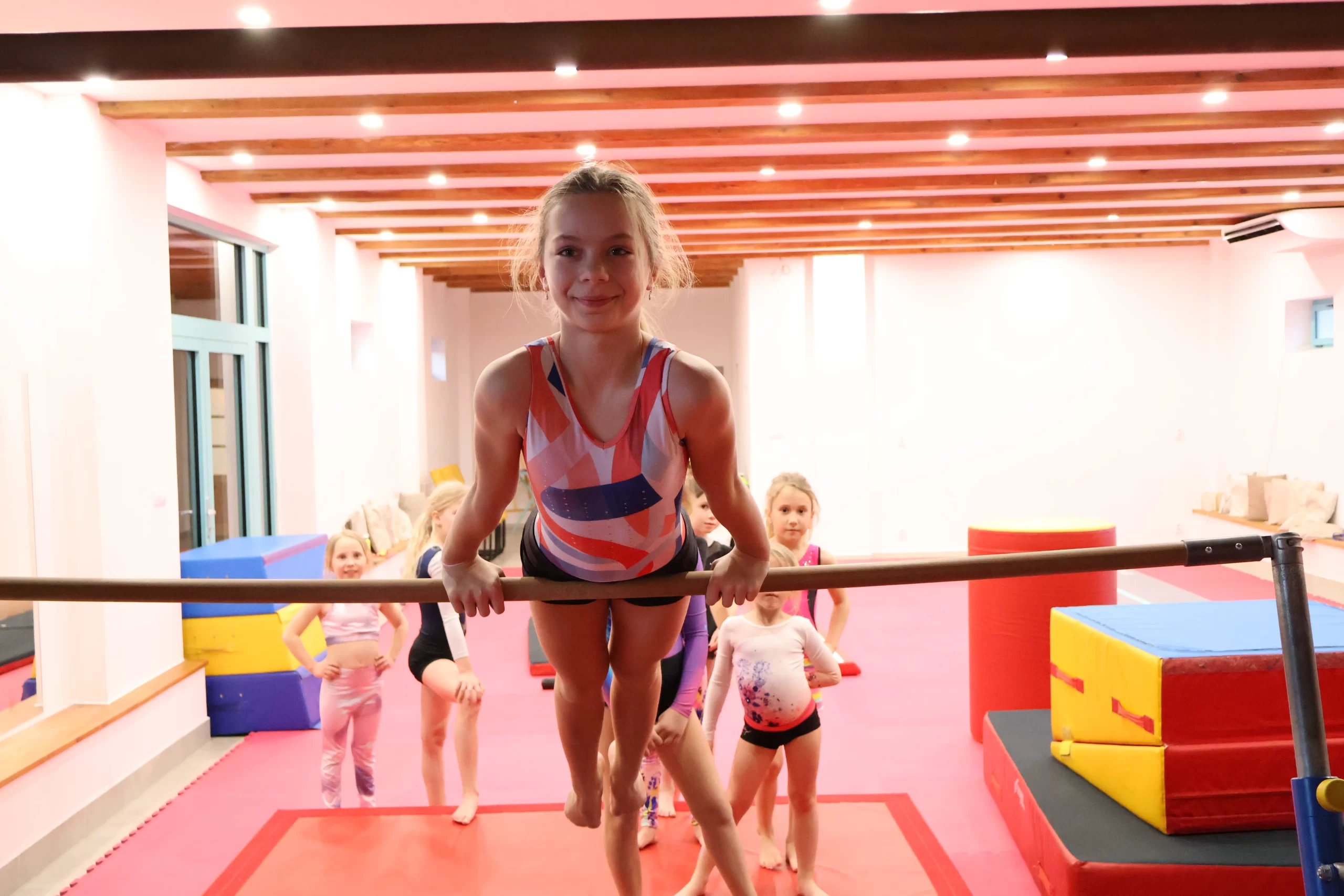- lekce probíhají v tělocvičně vybavené moderním gymnastickým nářadím, bezpečně a zábavně,